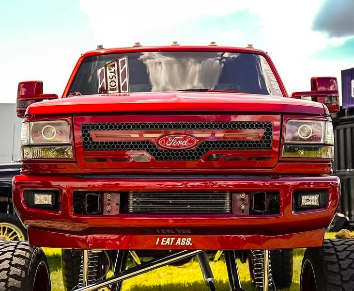 Make a bold statement with Overkill Fab's premium 1992-1998 Ford OBS F-150, F-250, and F-350 full replacement grille. Designed and made by hand in the USA, this grille is built to last and guaranteed to enhance the look of your OBS Ford truck. Our custom grille combines rugged durability with modern, aggressive styling, featuring integrated LED lighting options for improved visibility and a head-turning appearance.